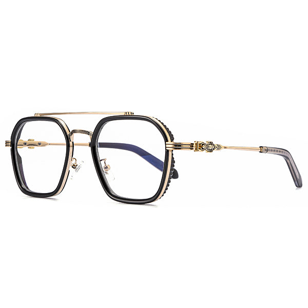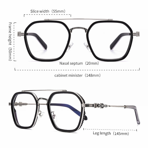 STYLE DESIGN: Step up your retro fashion game with our trendy and stylish double beam big frame glasses. Our glasses are adorned with Croix Lorraine side decorations that exude elegance and sophistication. The widened rims and reinforced temple arms provide comfortable and tailored fit for high prescription lenses, while the addition of a stylish design enhances the overall appeal.