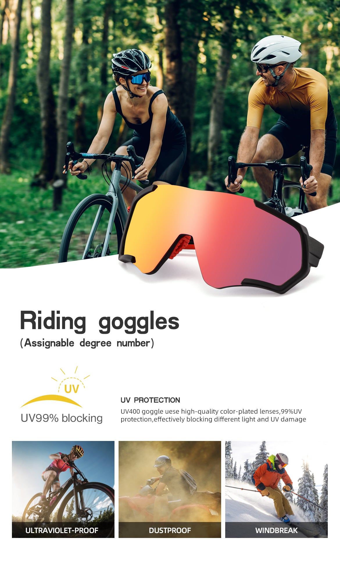 Wide-ranging Vision Large-frame cycling goggles more fashionable style and better UV blocking, broader vision, this is also a full-frame mirror without gaps, strong stability, suitable for all-weather cycling